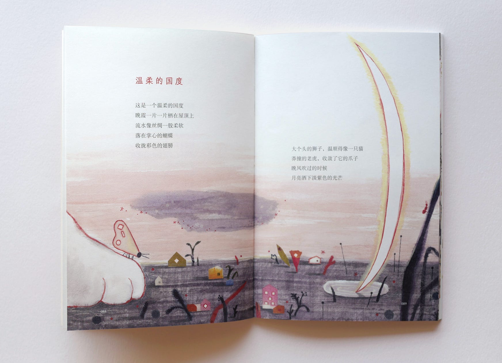 如果你手上有这本诗集,你会看到每一张结尾的那首诗被我拆成了4个跨页来做,这是一次创新的尝试。