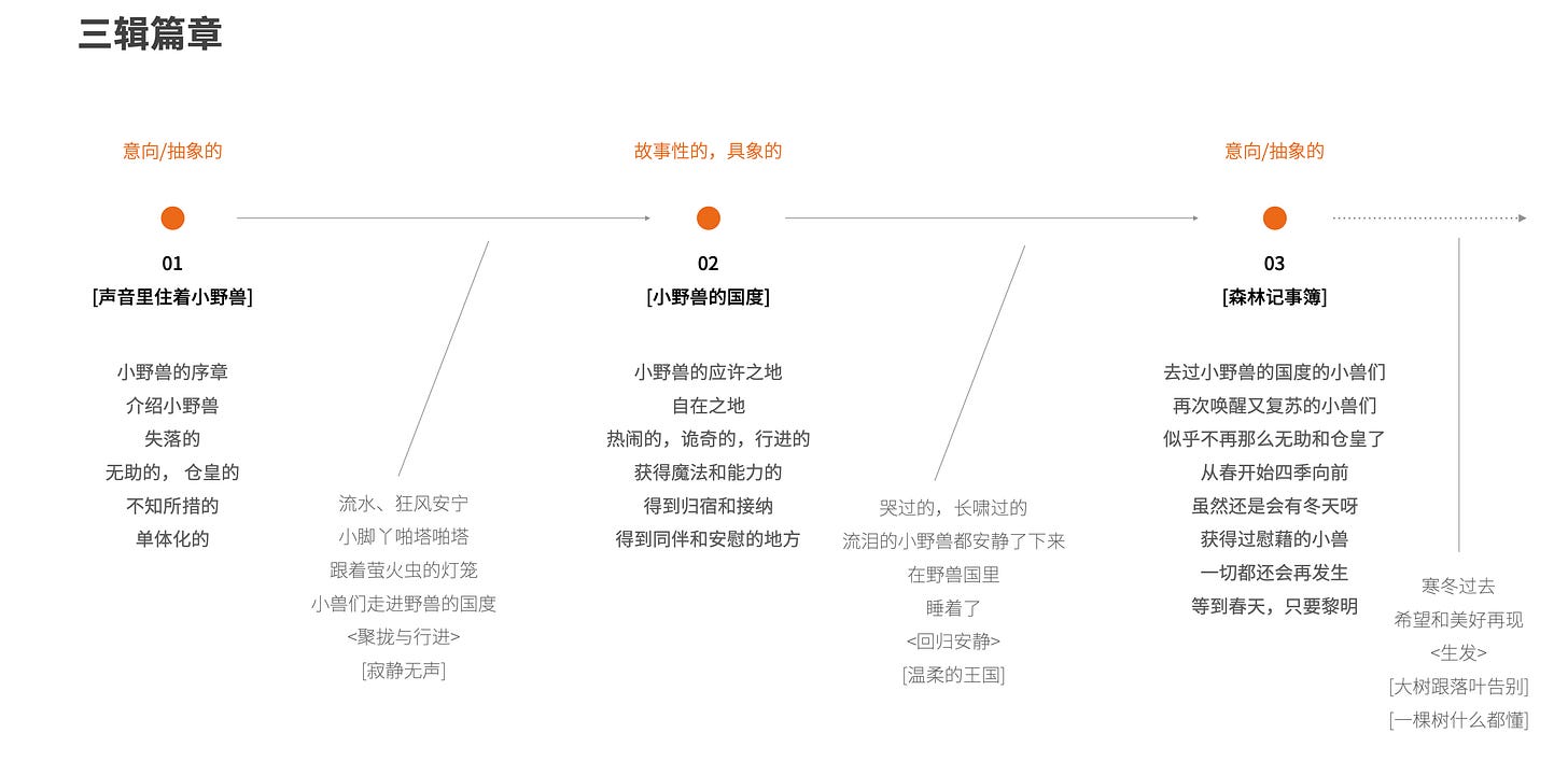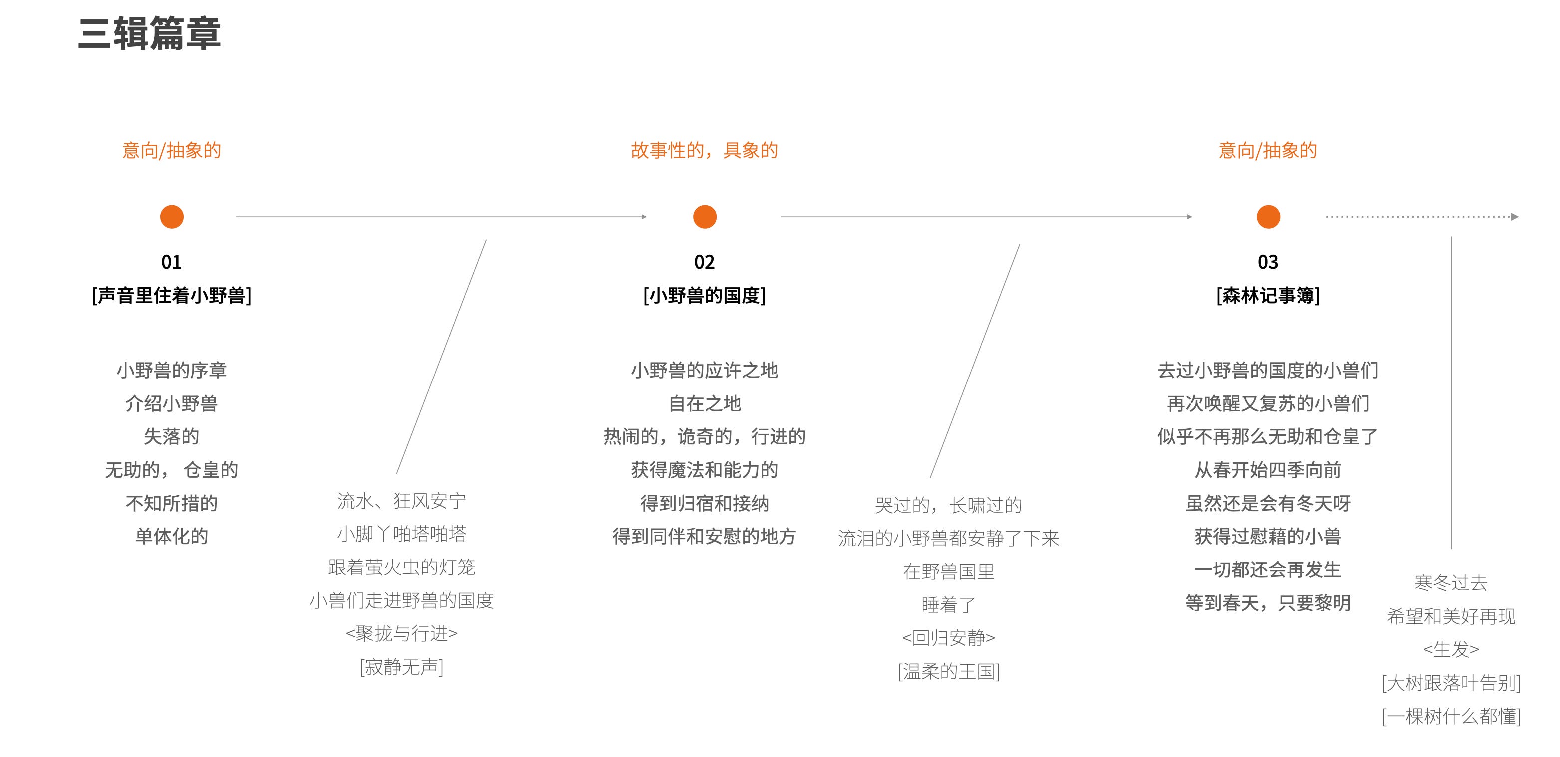 ⊹ [ 第一层构思:确立三个篇章的情绪氛围和叙事]