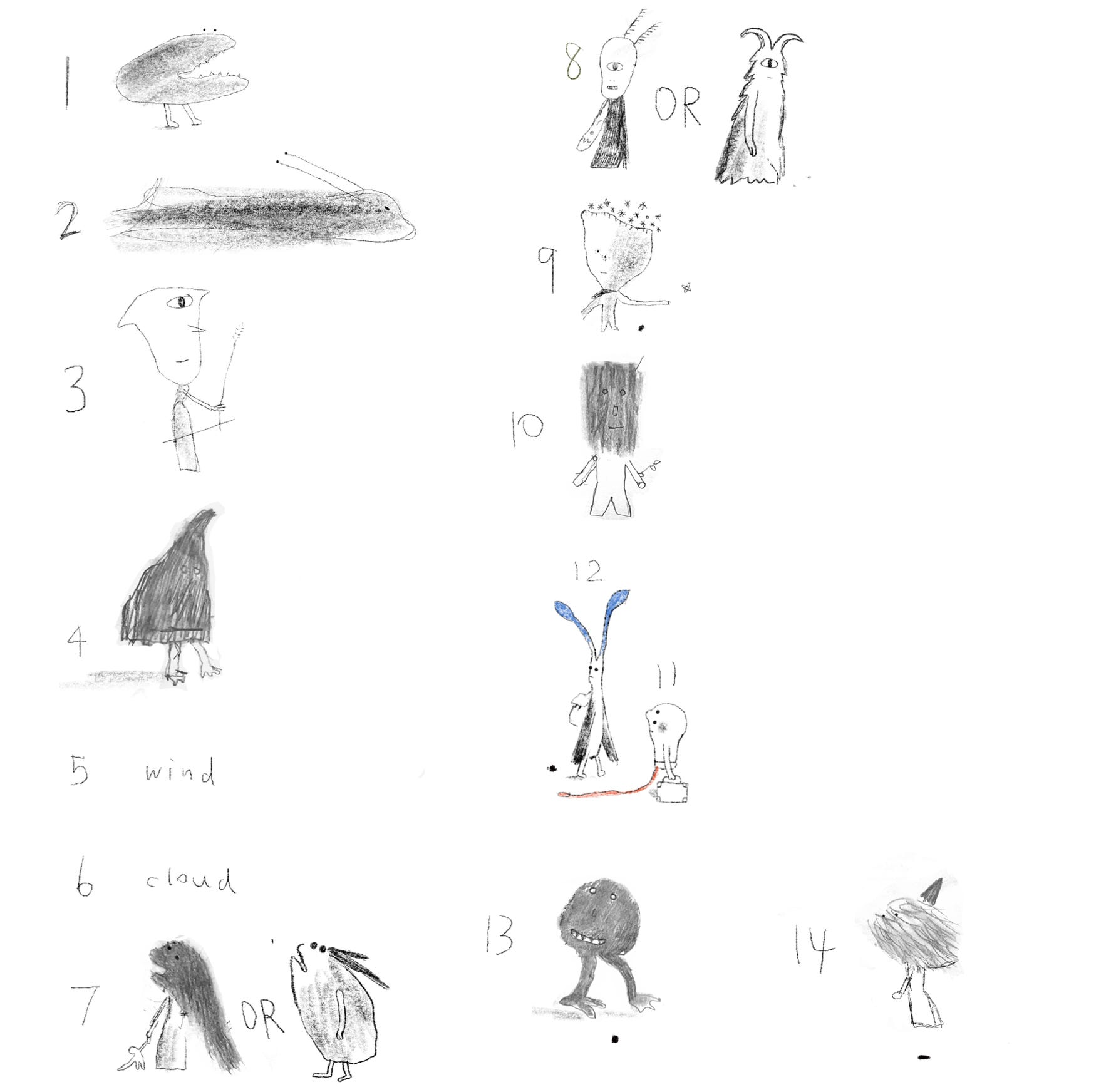 读到这里时,我立刻意识到:这本书中的诗歌前后顺序是被设计过的!一般的诗集,不论给成年人的还是给孩子的,其中的所有诗歌之间的逻辑关系往往是平行并列的,先后顺序并不会影响到意义表述。而《声音里的小野兽》在诗歌顺序排列上是有整体构思的。哪首诗作为一辑的结尾,哪首诗作为开始,哪些诗应被归在一辑中……这些是被作者考虑过的。我一下子兴奋了起来,我可以用我的插图把这些诗中潜在的联系呈现出来。把文字中隐藏的线索用视觉表达,让图像成为叙事的一部分。