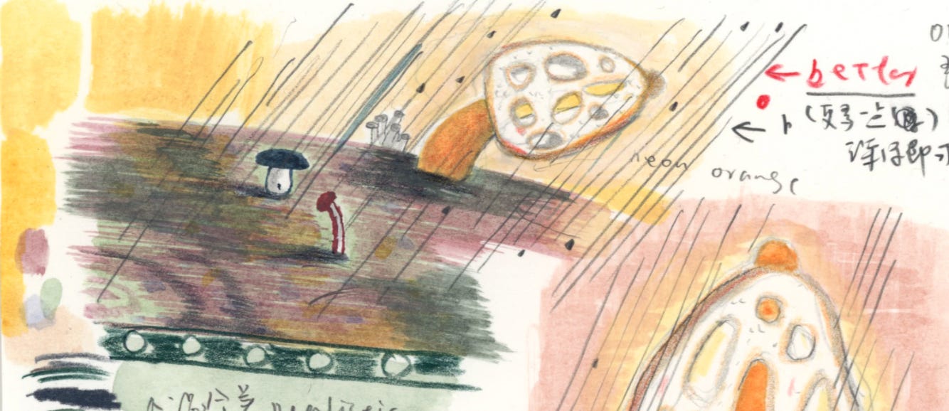 但相伴随的,是我进入了一个更困惑的创作阶段。当我不再能找到某个现成的风格作为「路标」后,我只好做更多的试画、试错、找参考图和资料图、对比尝试过的不同画法并自己给自己写下反馈……「颠三倒四」实在很适合来形容这个阶段,因为其中堆满了反复、自我否定、自我肯定和得意、迭代、修改,很难理出一个头绪: