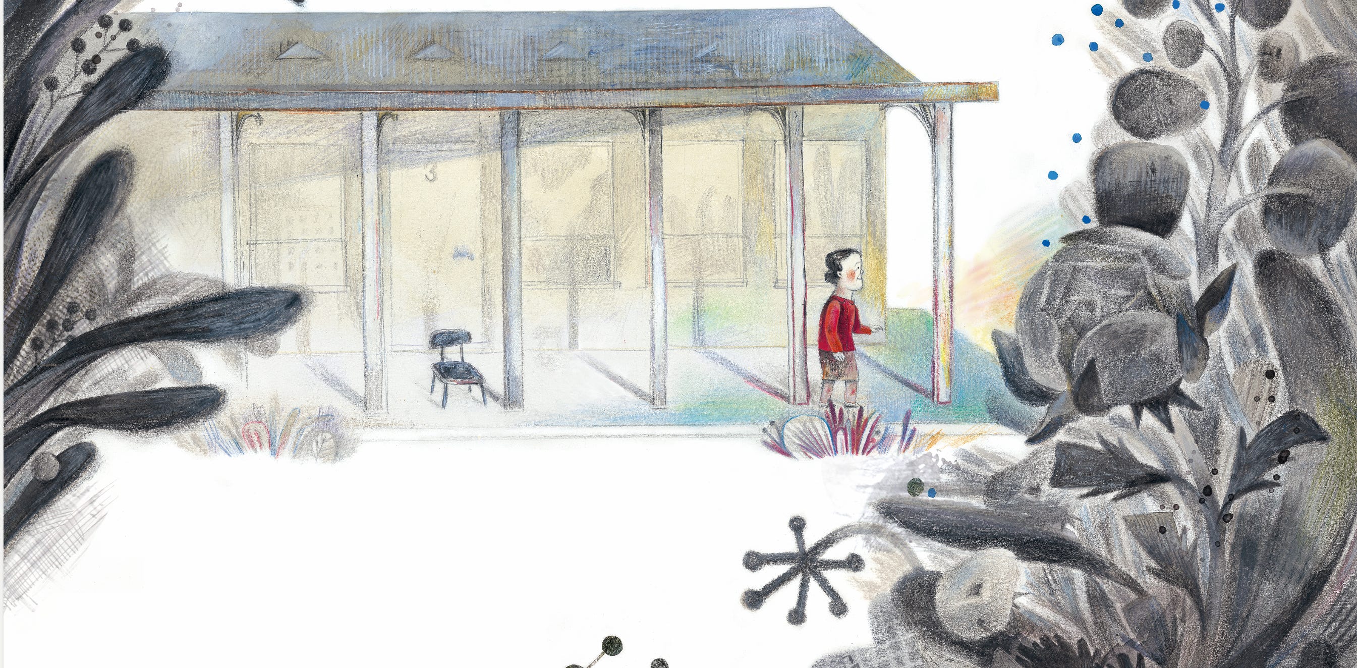 最早开始做绘本时,我总会下意识地给有一个对标。在我还没有去学习绘本前,我做过一本关于一位阿兹海默症奶奶的绘本的插图,那本书名叫《小姑娘时候的老婆婆》。画那本书时,我心里总是悄悄偷瞄着Isabelle Arsenault,觉得这本书实在太适合用她的风格来表达了!下面这张插图就来自我很久前出版的这本书,你一定能看出明显的学习、模仿Isabelle Arsenault痕迹↓